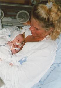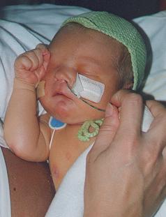 | Tirsdag aften var veerne taget til i styrke, og kl. 22:25 gik vandet. Kl. 05:00 var vi på fødegangen på Gentofte hospital og kl. 11:50, onsdag d. 11-11-1998 fødte Annika en 54 cm lang dreng, som vejede 3.450 gram. Jubiiii ... Der var bare et lille men: Det forløsende skrig man normalt hører i sekunderne efter fødslen kom aldrig. |